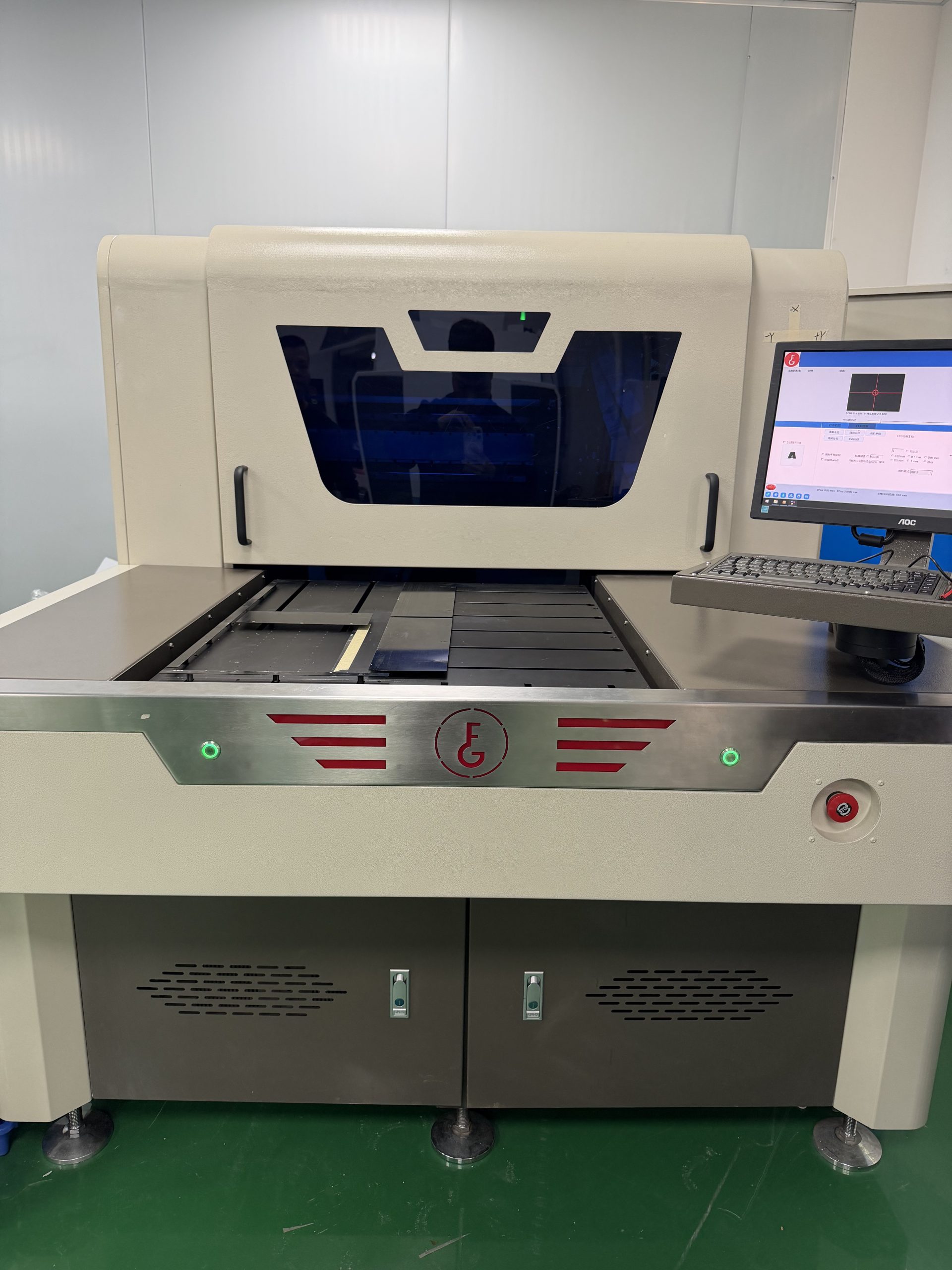 FPC 激光机是针对柔性电路板(Flexible Printed Circuit) 加工的专用激光设备,利用高能量激光束的热效应或光化学效应,实现 FPC 生产中的切割、钻孔、刻蚀、打标等精密加工工序,相比传统机械加工,具有无接触、高精度、热影响区小、适配柔性材质等核心优势。